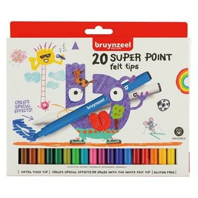 De super viltstiften van Bruynzeel mogen niet ontbreken in de knutselkoffer van de kleine creatieveling! Met de speciale punt kan je zowel dikke als dunne lijnen tekenen of grote en kleine vlakken kleuren!