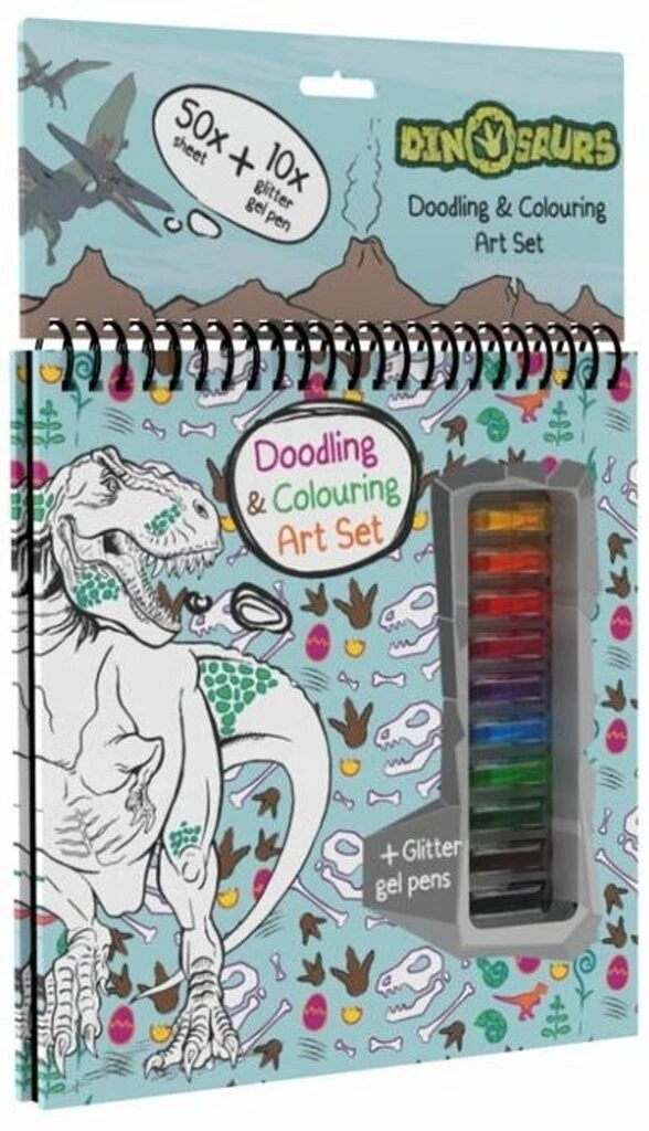 Dit boek heeft 50 vellen waarvan 12 met prehistorische dieren en de rest zijn witte vellen om zelf mooie creaties te maken incl 10 gelpennen in verschillende kleuren.