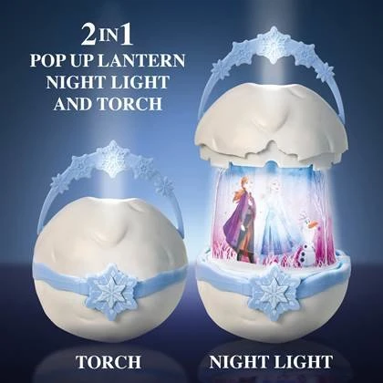 Dit handige Frozen nachtlampje helpt kinderen om rustig in slaap te vallen. Dit nachtlampje heeft een dubbele functie. Klikt het lampje open en dan verschijnt er een leuke koker met afbeelding van Anna en Elsa. Zet dit op je nachtkastje en je hebt een zacht lichtje zodat het niet helemaal donker is in de kinderkamer. Het nachtlampje is ook dicht te klikken en op te tillen, op deze manier komt er licht aan de onderkant uit en functioneert het als een zaklamp. Handig voor als je kindje toch nog even lezen wil, of naar de wc moet.