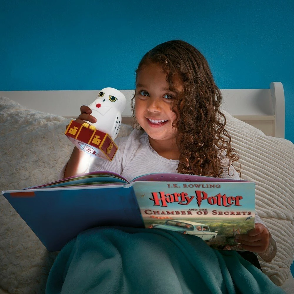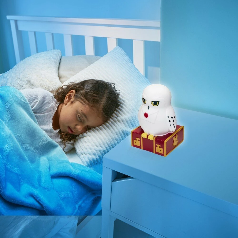 Deze toffe Harry Potter nachtlamp in de vorm van Hedwig kan niet ontbreken in de slaapkamer van eem Harry Potter fan. Deze lamp begint te branden op het moment dat hij beweging voelt. Zet hem op een nachtkastje, en Hedwig zal de kamer magisch verlichten. Wordt hij opgepakt, dan zal er een lichtstraal onderuit komen en functioneert deze nachtlamp als zaklamp. Handig voor als kinderen ook in het donker nog even wat lezen willen, of als er even naar de wc gegaan moet. Voelt de nachtlamp geen beweging meer, dan zal deze na 10 minuten vanzelf uitgaan.