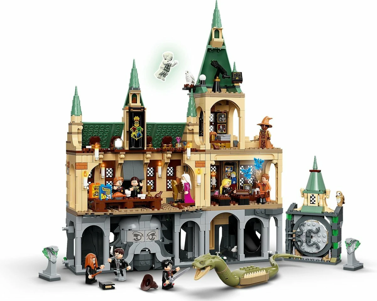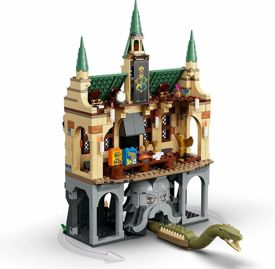 Ontdek de betoverende functies en speel met de populairste figuren. Ga in de grote zaal aan één van de twee lange tafels zitten en waan je in de film. Ook de gouden lessenaar van Perkamentus is er te vinden. En net als in de film heeft de geheime kamer een ronde ingang en een groot standbeeld van een geopende mond. Loop je daardoor heen dan kom je via een gang de Basilisk ruimte in.