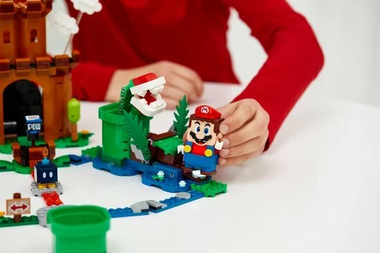Kinderen kunnen hun LEGO® Super Mario™ Avonturen met Mario startset uitbreiden met nog een spannend level en het opnemen tegen hun vrienden met deze leuke Uitbreidingsset: Bewaakte vesting (71362). De speler moet zelf een route kiezen voor LEGO® Mario™ (figuur niet inbegrepen), die speelgoedfiguren van een Bob-omb, Koopa Troopa of Piranha Plant moet verslaan en daarna op het POW-blok moet landen om de poort van de vesting te openen. LEGO® Mario™ kan de katapult gebruiken, over de rivier van lava springen of van steen naar steen over het ‘water’ stappen om de vesting te bereiken en digitale munten te verdienen.