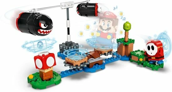 Voeg deze uitbreidingsset toe aan jouw LEGO® Super Mario™ startset en bereid je voor op het spervuur van Boomer Bill! Versla de Shy Guy en spring daarna op het ronddraaiende platform. Kies voor het uiteinde met noppen of riskeer het gladde uiteinde. Hoe sneller je ronddraait zonder dat je eraf valt of er door de Boomer Bills af wordt geduwd, hoe meer munten je wint. Verzamel de superpaddenstoel om te voorkomen dat LEGO® Mario™ duizelig wordt of gewond raakt door het vuur!