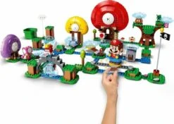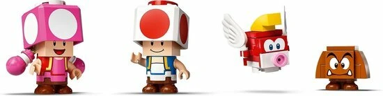 Voeg deze geweldige uitbreidingsset toe aan jouw LEGO® Super Mario™ startset en ga op zoek naar de schat! Help LEGO® Mario™ (figuur niet inbegrepen) over de schuivende en ronddraaiende platforms en brug te lopen. Tijdens zijn tocht komt hij Toad en Toadette tegen en neemt hij het op tegen Cheep Cheeps en een Goomba. Ontdek de 1-, 2- en 3-blokken in Toad Village en spring op alle 3 in de juiste volgorde om bonusmunten te verdienen.