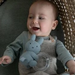 Lekker rammelen met de rammelaar van nijntje! Schudt de transparante ring in blauwe en witte kleurstelling en hoor een geluidje. De rammelaar uit de ABC-collectie stimuleert de hand-oog coördinatie van het kindje.