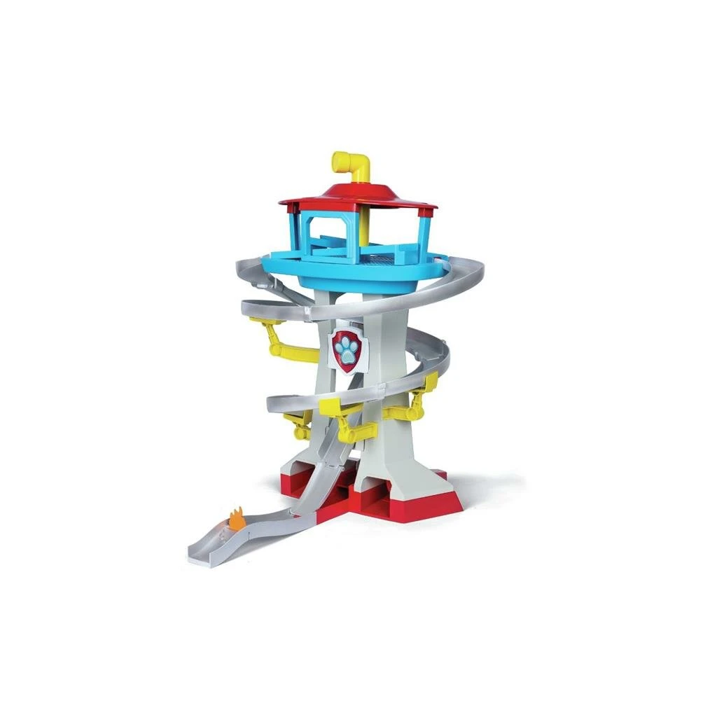 Deze spannende baanset met uitkijktoren heeft twee banen en kan tot zes PAW Patrol True Metal-voertuigen op schaal van 1:55 tegelijk lanceren! Bovendien bevat deze set exclusieve versies van gegoten voertuigen van Chase en Marshall. Door de authentieke details en graphics, werkende wielen en het materiaal van gegoten metaal zien de True Metal-voertuigen er net zo uit als de voertuigen van de PAW Patrol uit de populaire serie. Zet het hele PAW Patrol-team (andere True Metal-voertuigen worden afzonderlijk verkocht) boven op de toren en schiet racend te hulp. Druk op de periscoop om de pups in actie te laten komen en het vuur aan de onderkant van de toren te blussen!