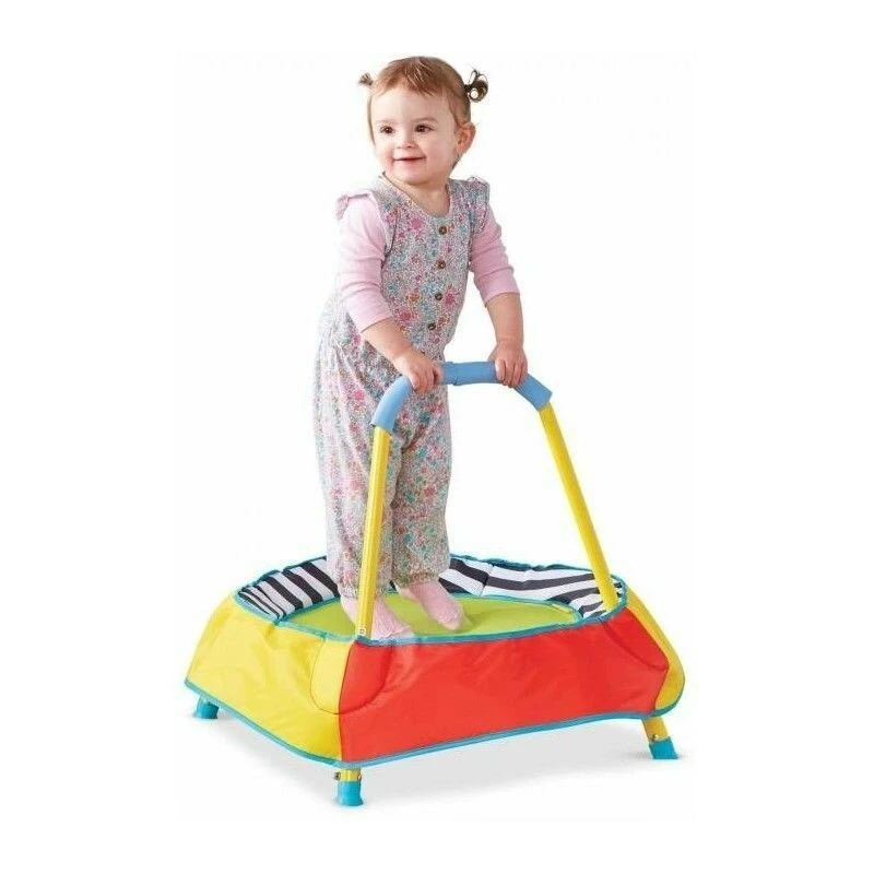 Deze peuter trampoline is geschikt voor alle kinderen die beginnen te lopen en lichamelijk actief beginnen te worden. De trampoline voor peuters is makkelijk in elkaar te zetten en kan zowel binnen als buiten gebruikt worden. Zo hoeft je kindje niet op de bank te gaan springen en spelen om energie kwijt te raken. De beugel die er aan vast zit maakt dat kinderen zich goed vast kunnen houden en het valgevaar verkleind wordt. De antislip pootjes zorgen dat de mini trampoline niet makkelijk van zijn plaats kan schuiven op een gladde vloer.
