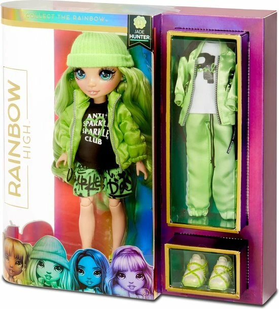 Verzamel een hele regenboog aan schitterende modepoppen met Rainbow High™. Maak kennis met Jade Hunter™.
