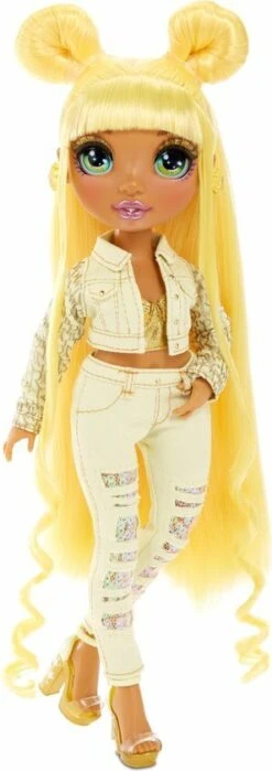 Verzamel een hele regenboog aan schitterende modepoppen met Rainbow High™. Maak kennis met Sunny Madison™. Ze is van top tot teen gekleed in het geel, heeft een prachtig gezichtje, lange wimpers en supermooi, borstelbaar haar. Ze is volledig beweegbaar en poseerbaar. Haar armen en benen zijn buigbaar, zodat je haar in allerlei glamoureuze houdingen kunt zetten.