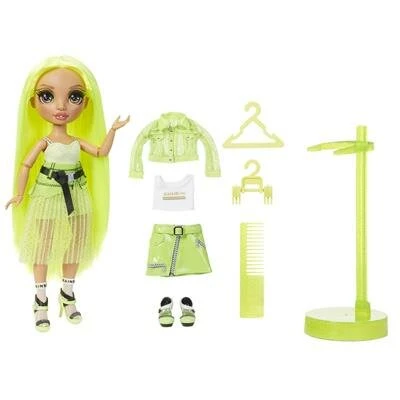 Verzamel een hele regenboog aan schitterende modepoppen met Rainbow High. Maak kennis met Karma Nichols. Ze is van top tot teen gekleed in neonkleuren, heeft een prachtig gezichtje, lange wimpers en supermooi, borstelbaar haar. Ze is volledig beweegbaar en poseerbaar. Haar armen en benen zijn buigbaar, zodat je haar in allerlei glamoureuze houdingen kunt zetten. Inclusief 2 complete outfits om te mixen en matchen voor opvallende, adembenemende looks. Karma heeft een #trending stijl en is klaar om te laten zien wie ze is. Kleed haar in haar twee strakke tops, twee rokken, jasje van gaas, 2 paar trendy hakken en meer. Ook inbegrepen zijn een haarkam, twee kledinghangers en een poppenstandaard.