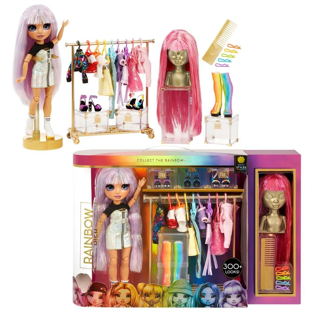 Inclusief exclusieve pop, Avery Styles. Avery is de glamoureuze modeontwerper waar iedereen naar opkijkt bij Rainbow High. En haar Fashion Studio biedt zoveel verbluffende mode om de perfecte look voor catwalk-klasse te creëren. Ze is volledig gearticuleerd en beweegbaar. Haar armen en benen buigen voor zoveel glamoureuze poses.