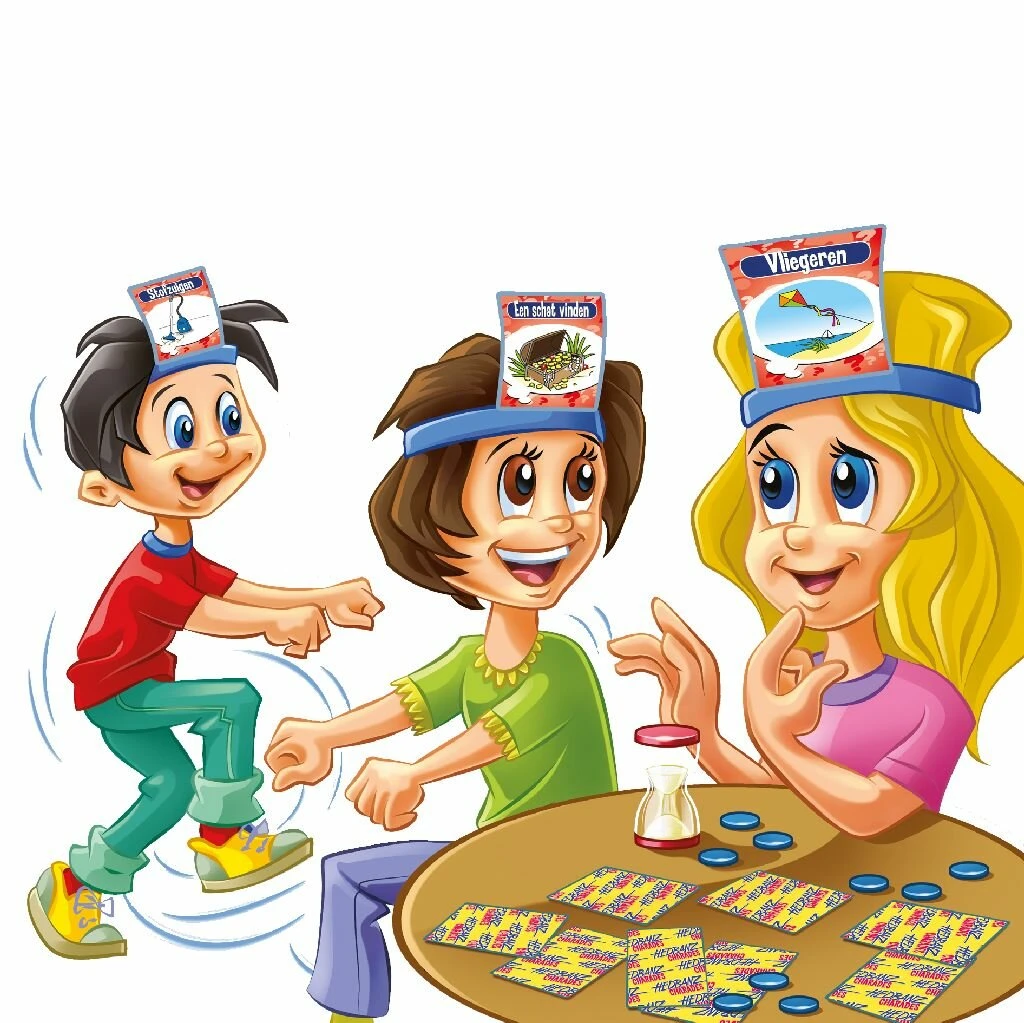 In dit vet coole gebarenspel moet je zo snel mogelijk raden wat de activiteit is, die op de kaart op jouw hoofd staat. Ben jij aan het vliegeren of eet je een ijsje?