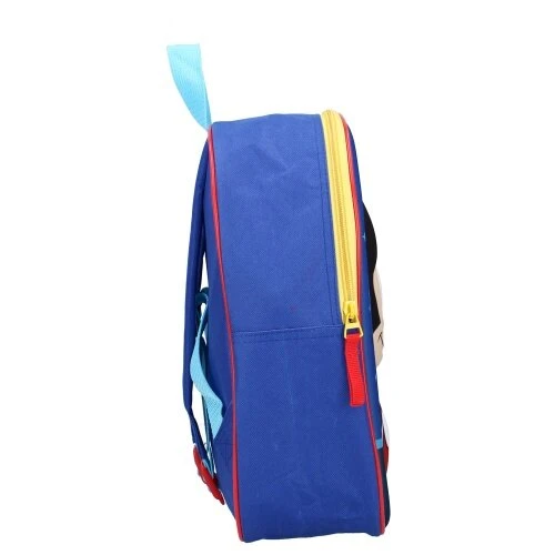 Een vrolijke blauwe rugzak voor een vrolijke jongen. Gaat jouw kindje straks met deze rugtas op naar school of de peuterspeelzaal? Op de rugzak staat Mickey Mouse vrolijk afgebeeld. De rugtas heeft een groot hoofdvak met ruimte voor een lunchtrommeltje, drinkbeker en wat extra kleding. De rits en de lus bovenaan de tas zijn lichtblauw; een leuk contrast met het donkerblauw van de tas. De lus is handig om de tas aan op te hangen en door de verstelbare schouderbanden is het draagcomfort hoog.