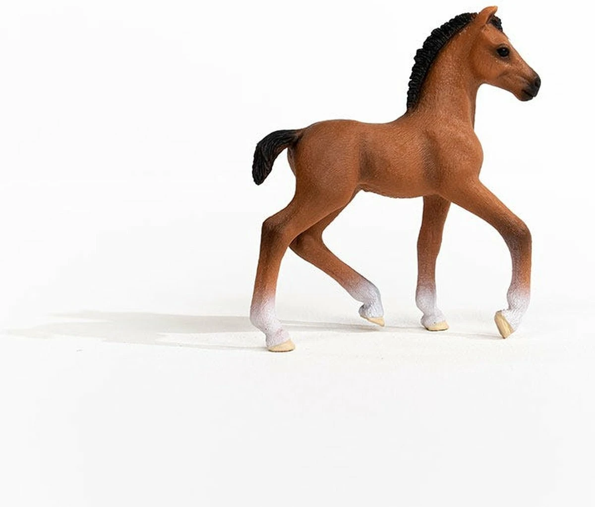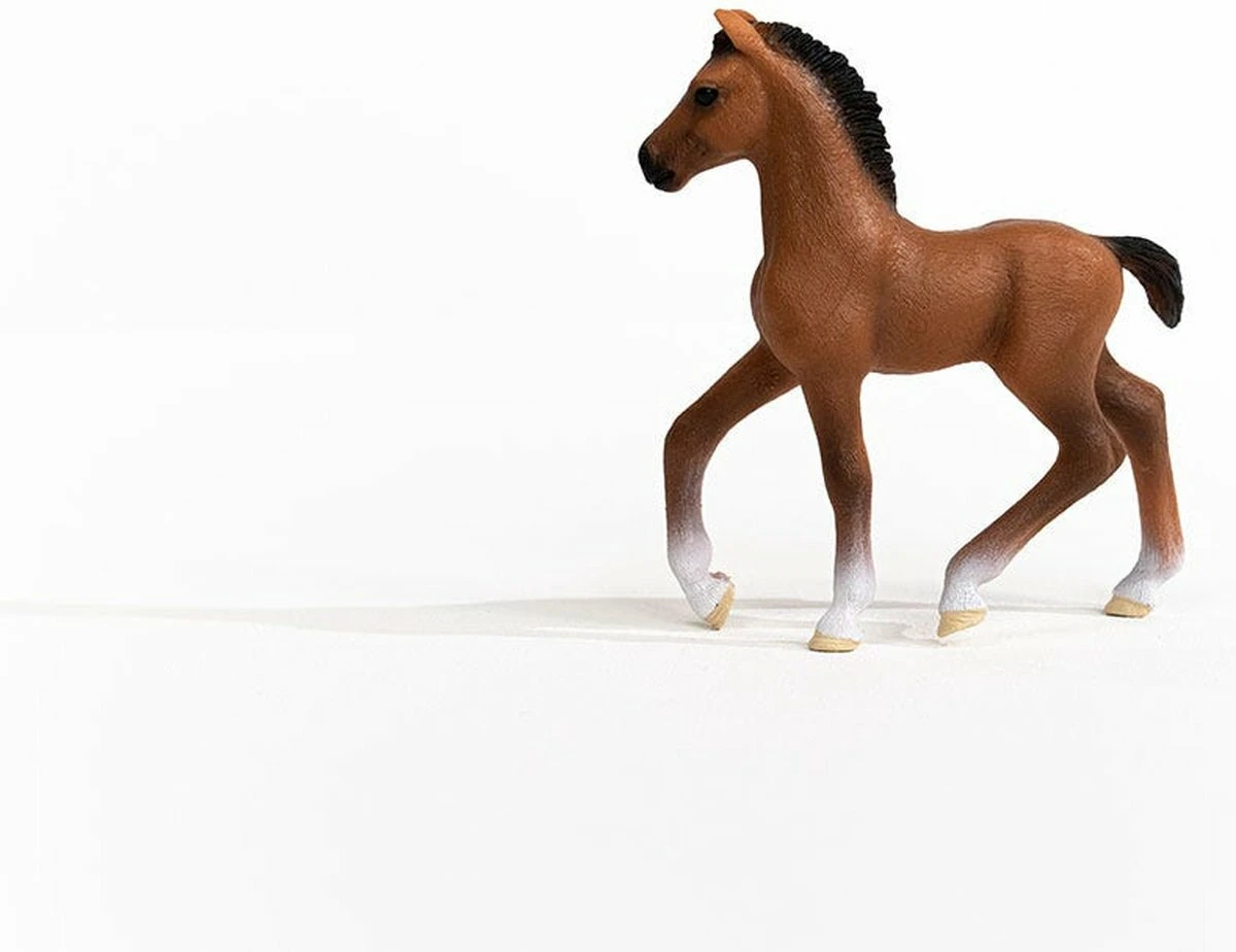 Dit Schleich veulen heeft al hele lange benen, hieraan kun je zien dat hij later een groot paard zal worden. Veulens hebben bij de geboorte al meteen lange benen waardoor ze maar moeilijk gras kunnen eten. Ze moeten helemaal wijd gaan staan. De Schleich veulens kunnen met deze benen al wel meteen heel hard rennen, wat natuurlijk nodig is als ze in het wild op de vlucht moeten slaan