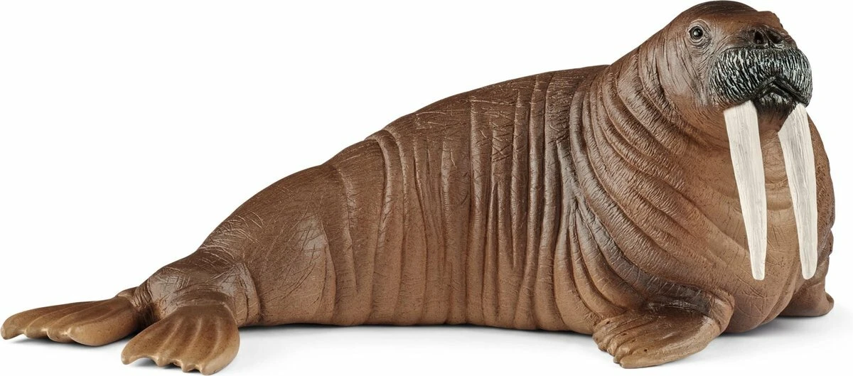 Deze Schleich Walrus heeft hele flinke slagtanden. Deze slagtanden kunnen wel een meter lang worden en de Schleich Walrus kan zich hiermee goed verdedigen tegen de ijsberen. Behalve om te vechten gebruikt de walrus zijn tanden ook om op rotsen te klimmen of uit het water te klauteren.