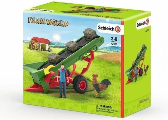 De boer en de transportband voor hooi zijn de perfecte aanvulling op de boerderij van Schleich en de tractor. De kleine landbouwers kunnen de hooiballen met speels gemak naar de hooizolder transporteren. Het transportband kan op de gewenste hoogte worden ingesteld. Alle Schleich® figuren zijn met veel aandacht voor details geproduceerd en beschilderd.