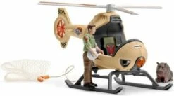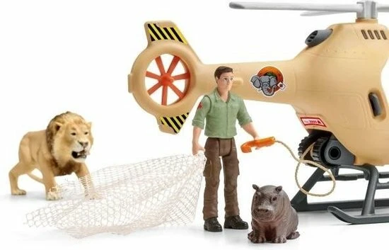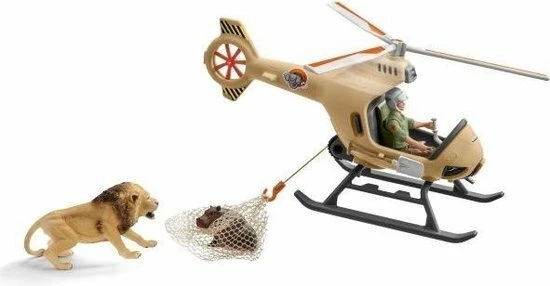 Met deze Schleich helikopter kan de ranger dieren redden van plekken waar een auto niet kan komen. Met zijn lier die aan de onderkant van de helikopter hangt kan hij dieren redden, optakelen en naar een veilig plek vliegen om de dieren vervolgens weer vrij te laten.