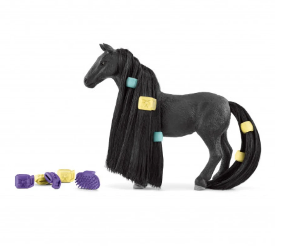 Dit Schleich beauty paard is een echt werkpaard. Ze helpt graag bij het vee drijven en soms helpt ze verdwaalde eenhoorns. Na zo’n drukke dag wil ze maar te graag haar weelderige lokken goed verzorgen, kammen en het mooi versieren met haarknipjes. Dit Schleich paard met kambare manen behoord tot Sofia’s beauties en ze is best ijdel.