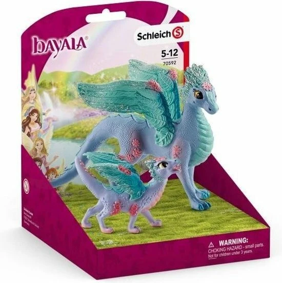 Deze Schleich bloemendraak leeft samen met haar drakenbaby op de uitgestrekte bloemenvelden van het rijk Bayala. Het zijn vriendelijke draken die vrienden zijn met de eenhoorn, elfen en andere fantasiedieren die hier leven.