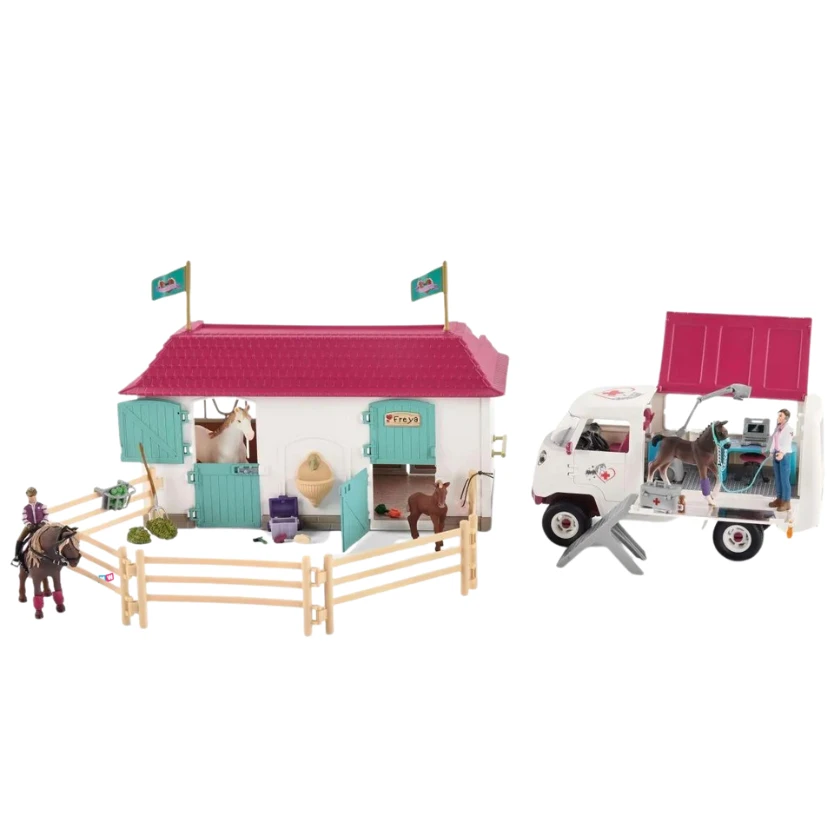 Deze Schleich speelset met mobiele dierenarts en paardenstal komt in één doos. De mobiele dierenarts is ook los te koop. Deze Schleich speelset uit de exclusive reeks is niet overal te koop en maar beperkte tijd leverbaar. De set is compleet en kinderen kunnen direct beginnen met het bedenken van mooie paardenverhalen.