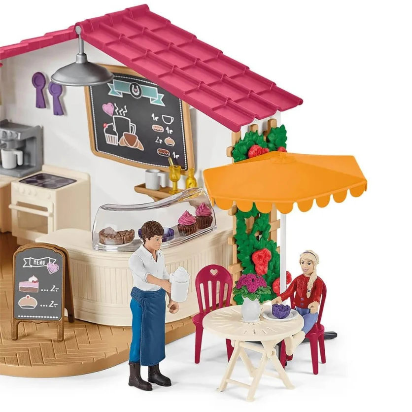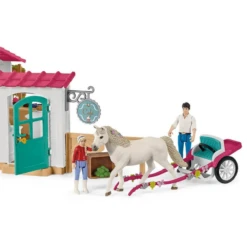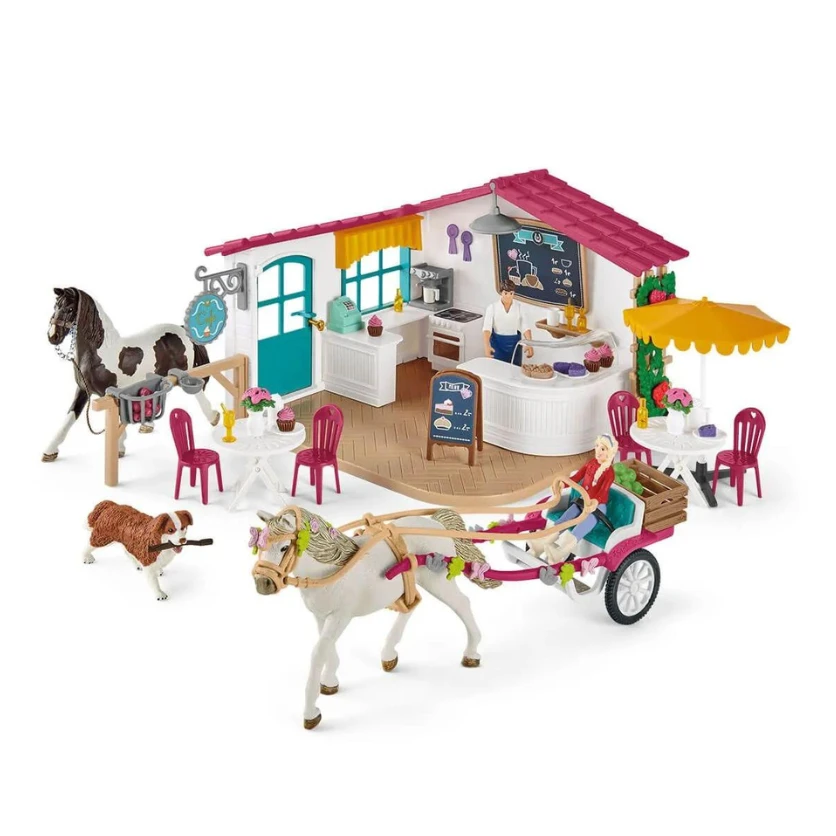 Deze Schleich exclusieve speelset bevat 2 speelsets bij elkaar, de Schleich paardenkoets 42467 en Schleich ruitercafé 42592. Door ze samen te voegen wordt het meteen een special edition en zijn ze samen goedkoper dan dat elk speelsetje los wordt verkocht.