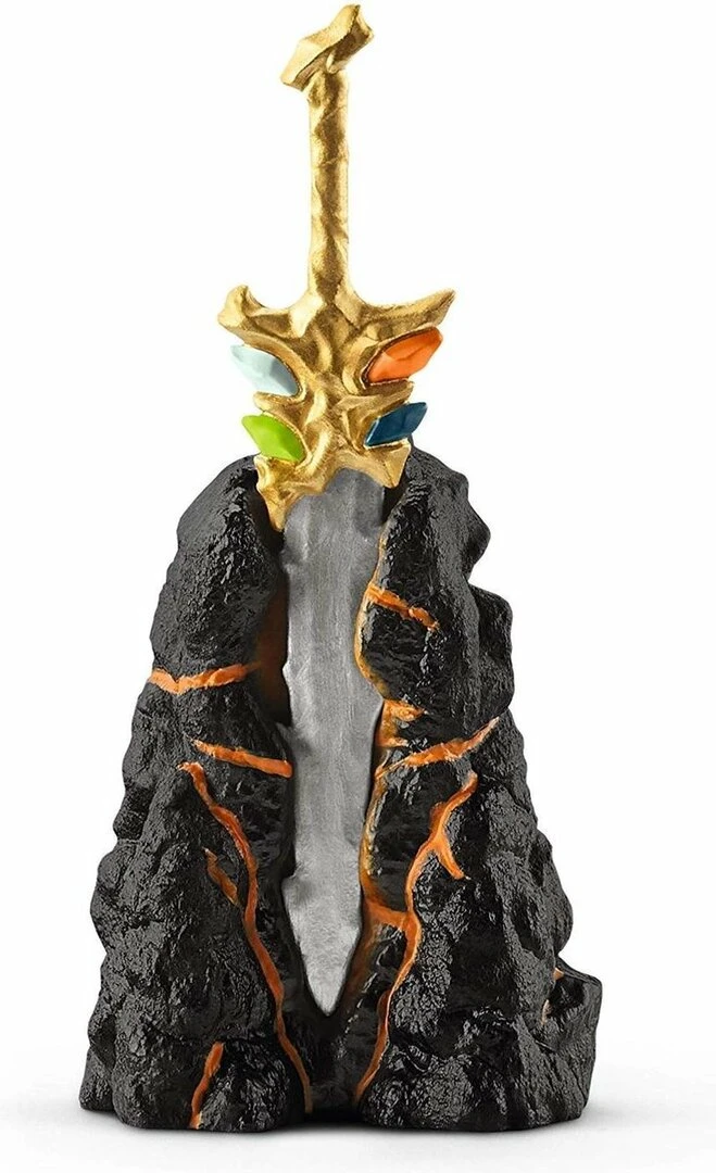Het Schleich superzwaard zit in een lavarots, maar deze kan er uit zodat de speelbeleving nog echter wordt.