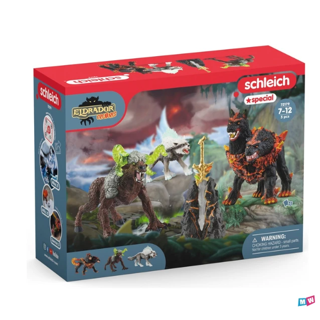Met deze Schleich startersset uit het rijk Eldrador kunnen kinderen direct de Schleich monsters tegen elkaar laten vechten om het superwapen. de set bestaat uit de beruchte lavasteen met zwaard die magische krachten heeft en drie monsters uit de verschillende werelden. Alles binnen handbereik om kinderen vol fantasie en creativiteit te laten spelen en ontdekken.