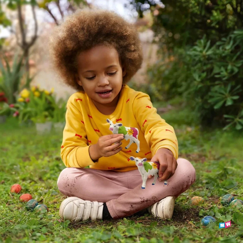 Deze speciale editie van Schleich is speciaal gemaakt voor de lente van 2023. Dit kalf met gekleurde vlekken toont de vrolijkheid van de lente aan. Een uniek collectersitem, maar ook een mooi speelgoeddier dat perfect aansluit bij de andere Schleich boerderijdieren.