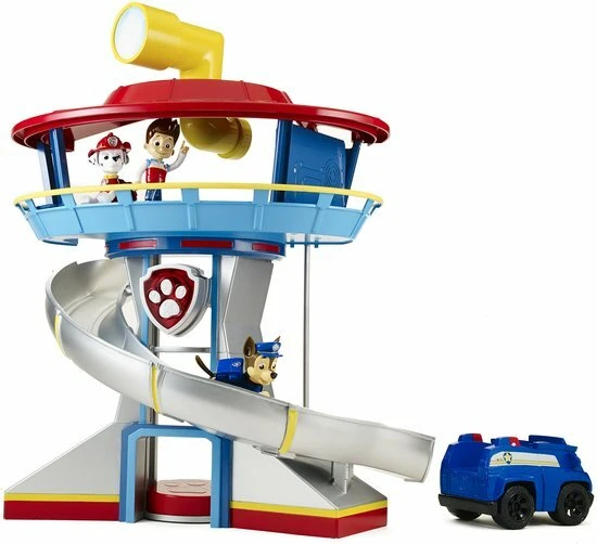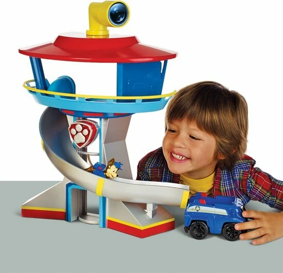 Dit Paw patrol hoofdkwartier wordt geleverd inclusief Paw Patrol Chase met een Paw patrol voertuig. Chase kan met de lift naar boven om zo op de top van de Paw Patrol lookout tower de uitkijk te nemen. Gebruik de echt werkende periscoop waarmee Chase de omgeving af kan speuren op zoek naar gevaar. Dit Paw Patrol hoofdkwartier ziet eruit zoals in de serie en het stimuleert de fantasie van je kindje en er zullen mooie verhaallijnen bedacht worden. Deze set is uit te breiden met de andere Paw Patrol autos met losse pup.