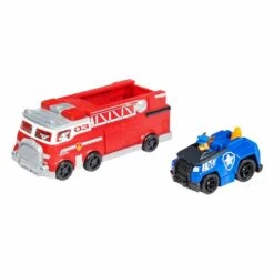 Deze set Paw Patrol true metal auto’s bestaat uit twee voertuigen. Een Paw Patrol Marhall brandweerauto met achterklep die open kan zodat de Paw Patrol Chase politieauto er achterop in kan rijden. Op deze manier kan Marshall ook de andere Paw Patrol pups meevervoeren. Alle True metal auto’s van Paw Patrol hebben een schaal van 1:55, hierdoor zijn alle Paw Patrol true metal speelsets met elkaar te combineren.