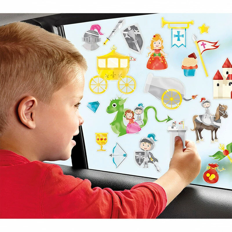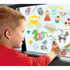 Ik ga op vakantie en neem mee….raamstickers om een lange autorit minder saai te maken. Natuurlijk kunnen deze raamstickers ook thuis gebruikt worden op de ramen en alle andere gladde oppervlakten. Er zit ook een gladde kaart bij waar de stickers op geplakt kunnen worden. De stickers zijn herbruikbaar, dus wil je ze ergens anders hebben dan haal je ze simpel weer weg en plakt ze ergens anders neer.