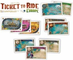 De jubileumeditie heeft een extra groot spelbord met nieuwe illustraties, zeer gedetailleerde treintjes en treinstations in prachtige blikjes. Daarnaast is elke bestemmingskaart die ooit verschenen is sinds de eerste uitgave van het spel inbegrepen wat dit met recht een unieke jubileumeditie maakt van Ticket to Ride Europe.